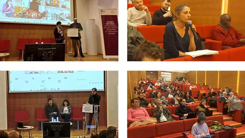 la présentation du rapport « État de la pauvreté en France 2025 - 30 ans de regard sur les pauvretés », par Jean Merckaert, directeur Action Plaidoyer France Europe, et Mathilde Nugue, responsable du département Analyse des pauvretés et territoires, au Secours Catholique-Caritas France.