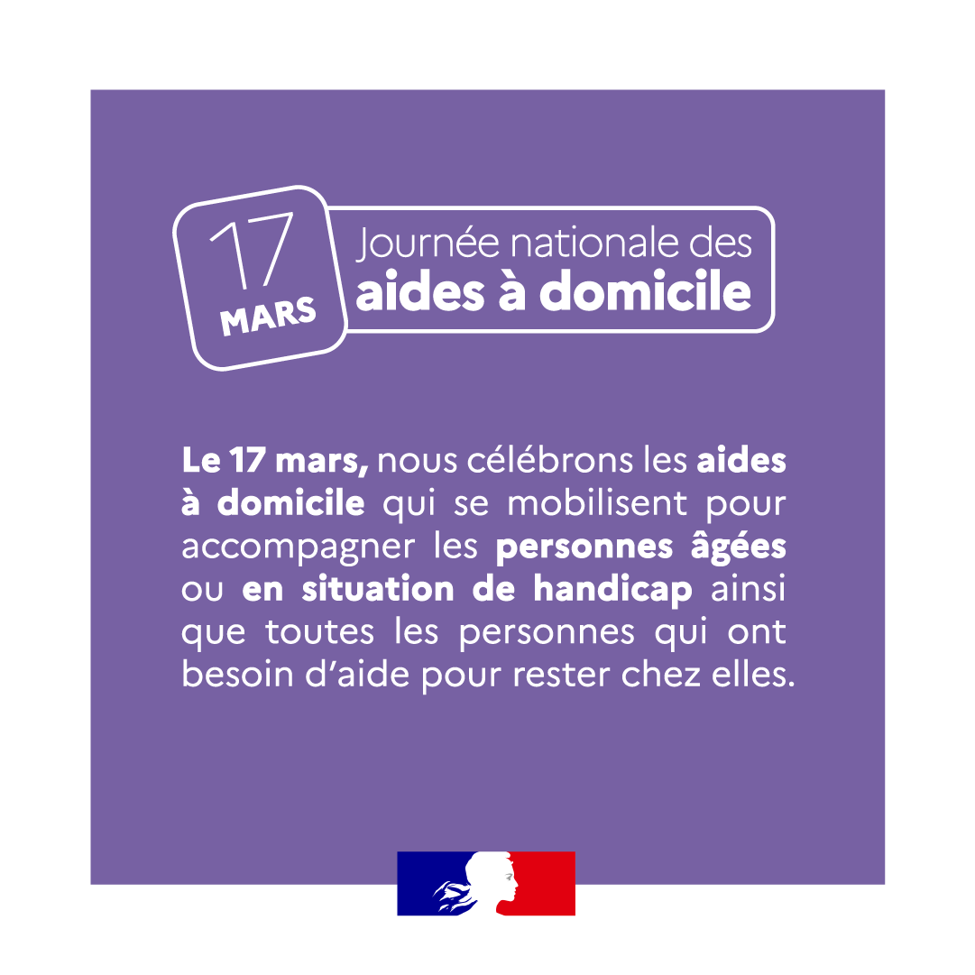 Vignette Facebook et LinkedIn - 17 mars - Journée nationale des aides à domicile - 2024 - Texte et logo